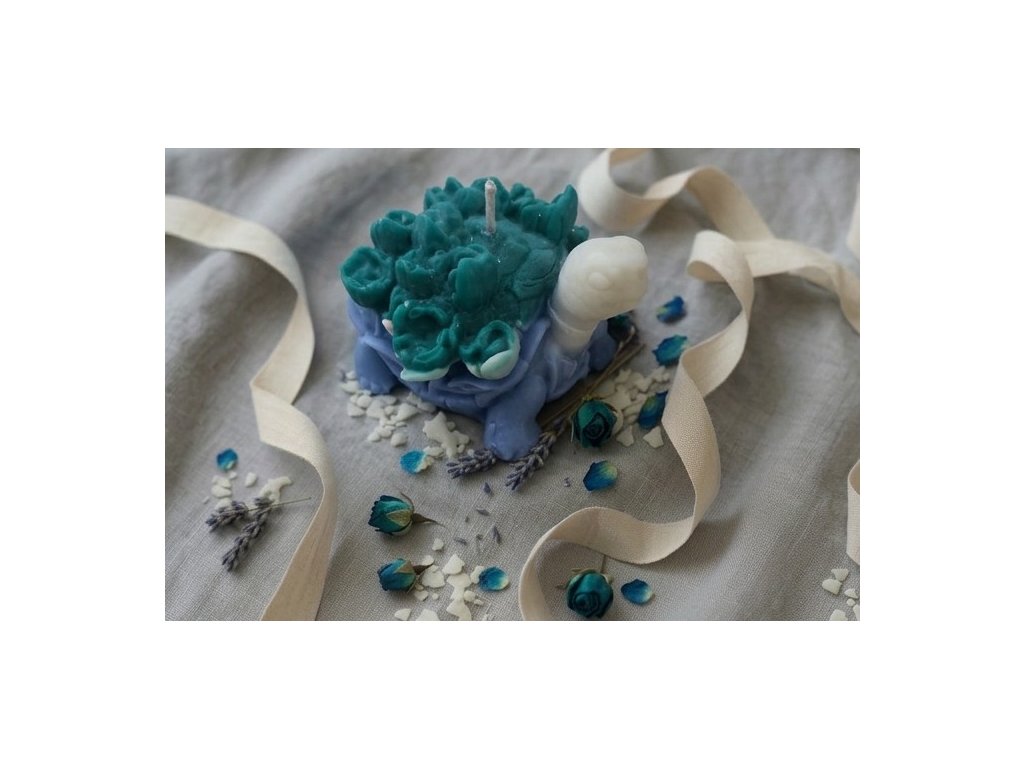 Ručně odlévanou želvičku, která přináší kousek slunečného pobřeží přímo k vám domů. 🌊 Tato unikátní svíčka v sobě spojuje klidnou modř moře 💙 a krunýř z rozkvetlých růží v tyrkysovém odstínu 🏝️. Ale to nejlepší? Voní po šťavnatém a zralém mangu! 🥭☀️