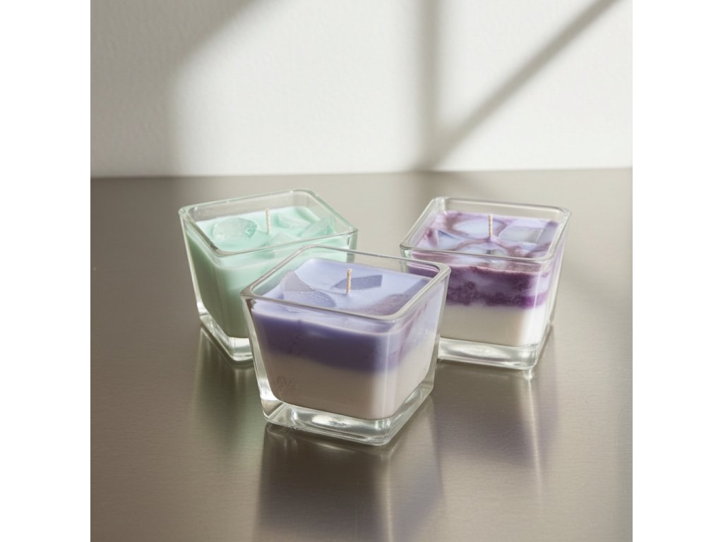Elegantní ručně vyráběná svíčka ve skleněné kostce okouzlí svým jemným designem připomínajícím ledové krystalky na povrchu. Vůně bílé čokolády vytváří sladkou a krémovou atmosféru, která zahřeje duši i v chladných dnech.
