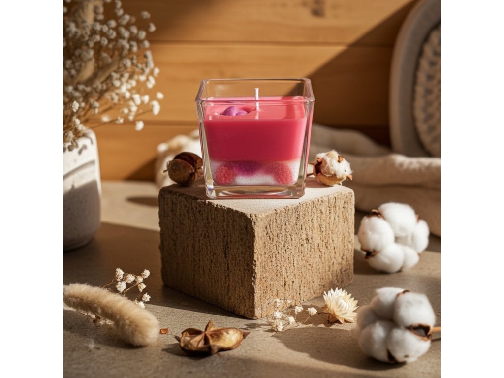 Tahle krásná svíčka s vůní lesních plodů je jako procházka letním sadem plným šťavnatého ovoce. 🍓🫐 Její sytě červená barva, jemné vrstvení s "krystalky" a hlavně ta nádherná třešeň navrchu 🍒 vytváří pocit luxusu a požitku. 🕯️✨ Zapalte ji a nechte se unášet vůní, která provoní celý váš domov.