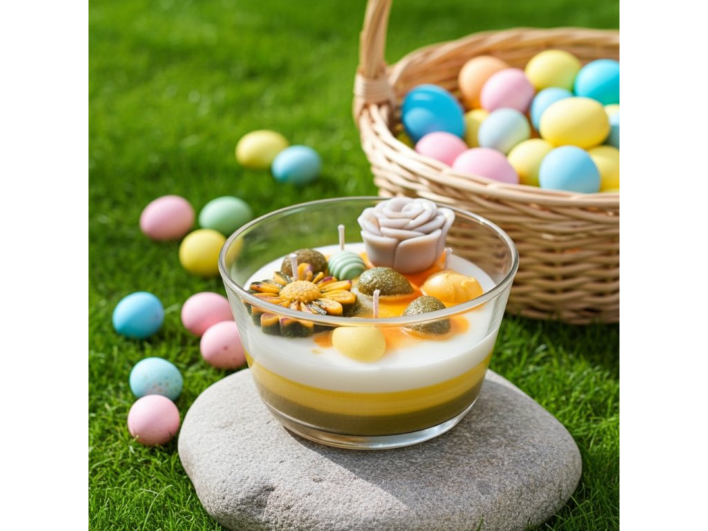 „Kousek jarního slunce ukrytý v barvách a květech. 🐰 Nechť vám tato svíčka zpříjemní velikonoční chvíle a naplní váš domov hřejivou atmosférou a radostí. 🌿🌷“